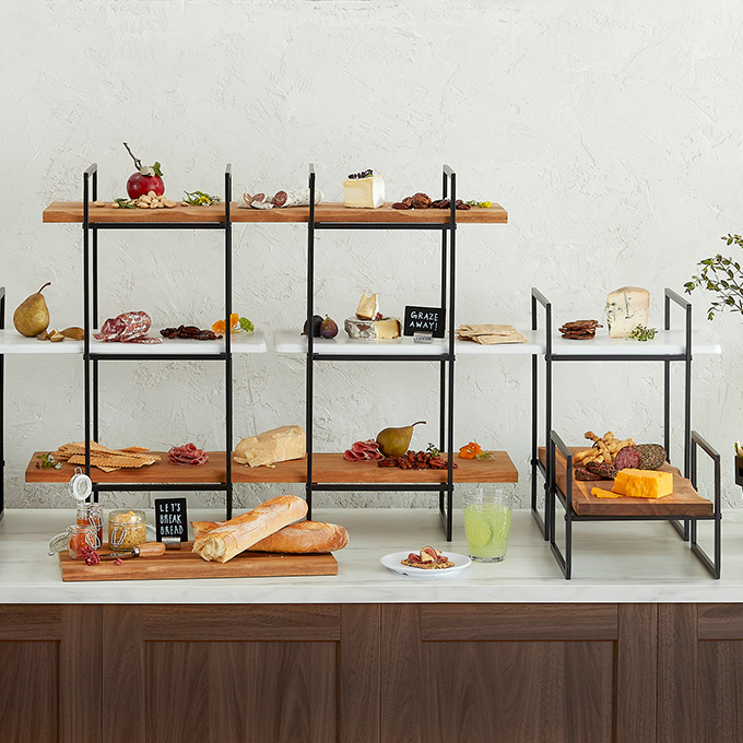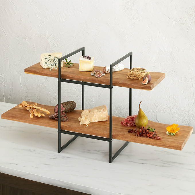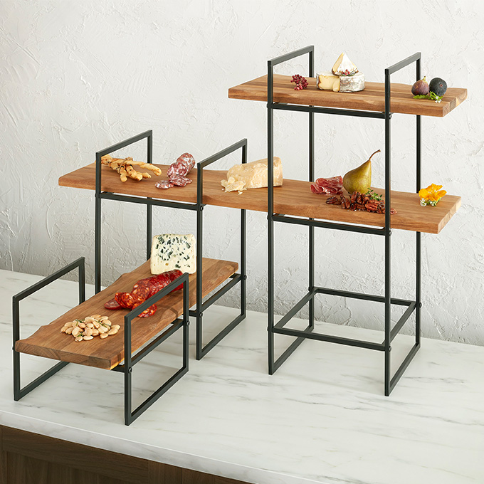 Acacia wood adds a touch of rustic beauty to any buffet line or grazing table. These organically-edged platters will easily boost the look of any charcuterie board or display. Use them on their own or in combination with the Twilight Modular Risers to create a dynamic customized display.