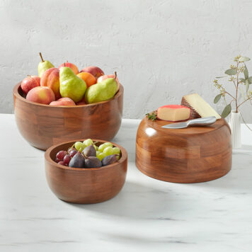 Earthy, elegant, and endlessly versatile—these richly grained acacia wood bowls bring natural warmth to any tablescape. From crisp salads to shareable sides, they serve with style while holding their own as beautiful display pieces. Use them on their own or pair with other items from our Loft Collection to create layered, elevated presentations with rustic charm.