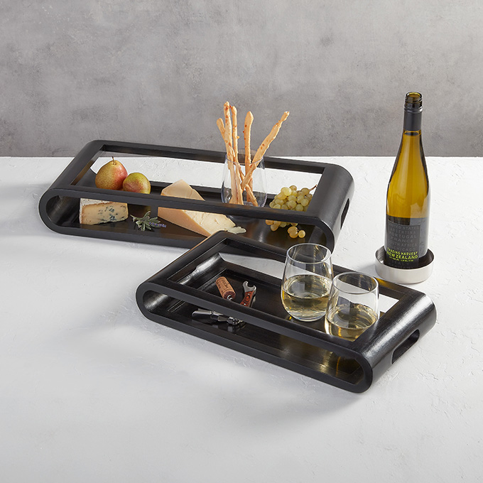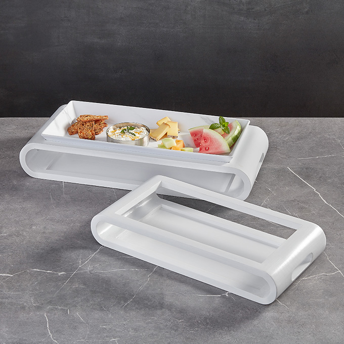 Discover the perfect blend of style and function with our sophisticated wood serving trays. Available in sleek white and rich espresso finishes, these trays feature modern design elements like cutout handles and open sides. Ideal for elegantly presenting and securely containing everything from hors d’oeuvres to packaged goods, they are a versatile choice for any setting. Whether enhancing a chic buffet or adding a touch of refinement to an intimate gathering, our wood serving trays bring a dash of elegance to every occasion.