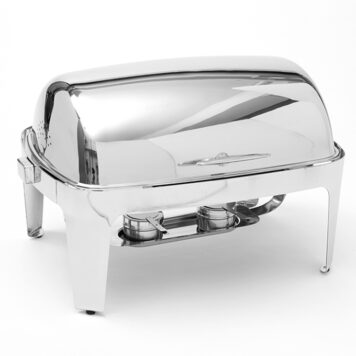 These stainless steel roll-top chafers feature a hydraulic hinge that can be kept open at any angle. With luxe finishes and essential features for the buffet line, these chafers truly deliver. Complete with food pan, water pan, and two fuel holders.