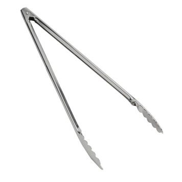 With a length of 16″, these versatile utility tongs are a serving essential! Featuring scalloped edges, these tongs securely grasp foods and allow you to maneuver them as needed. Perfect for buffets, catered events, and back-of-house grilling, these tongs can be used for plating salads, flipping burgers, serving bread rolls, and more! The replaceable tempered double flat steel springs easily open and close, so you can pick up foods both big and small. Designed for commercial use, these tongs also have a concave utility grip for comfortable handling. Their extra-heavy weight 1.2 mm stainless steel construction offers long-term durability, even with daily use by both staff and guests. Use these dishwasher-safe tongs at your restaurant, bar, cafe, or hotel.