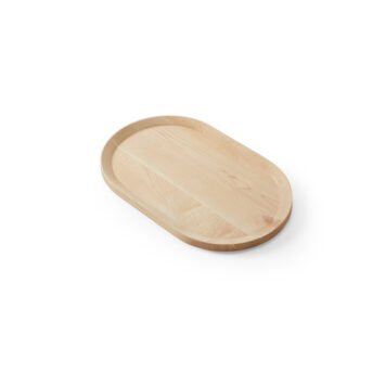 The perfect middle ground—roomy enough for a generous spread, but sleek enough to keep things looking effortless. This 18-1/8″ x 11-3/8″ oval maple platter flips between a rimmed edge for structure and a flat side for modern minimalism. Ideal for cheese boards, small plates, or finger foods.