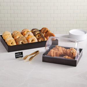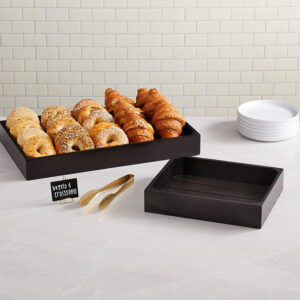 At 20-3/4″ L x 12-5/8″ W x 2-1/2″ H, this rich, espresso-toned wooden crate from the Upton Collection gives ample space to serve up foods on a buffet line in style. You could also pair it with our rubberized wedges to angle the crate for an aesthetically pleasing display. The options are endless!