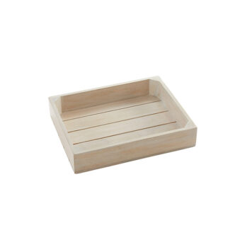 Show off your seaside snacks with this charming 12-3/8 inch L x 10-1/4 inch W x 2-1/2 inch whitewashed wood crate! Its sun-bleached finish brings a touch of coastal flair to any spread. Perfect for showcasing your favorite treats, this crate can be paired with our rubberized wedges to create a stylish angled display that’s sure to make waves. Handcrafted by artisans in India, each piece carries unique variations in texture and color— a true mark of its natural beauty.
