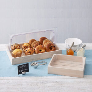 These wood crates are as versatile as it gets. They can be used to hold fruit, present bread, display baked goods, or for storage. However you choose to use them, these crates add a rustic touch.