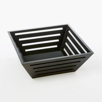 We love the versatility of this 12” square, modern, tapered, dark birch basket.