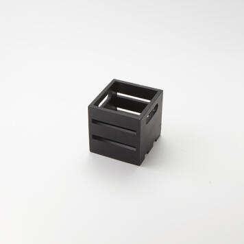 Sized at 6-1/4″ L x 5-3/4″ W, this black wood crate is a small size designed to serve your baked goods and fruits in a bite sized package. Its black hue makes it bold and dynamic. Pair it with our wood crates in other colors and sizes for a unique and layered display.